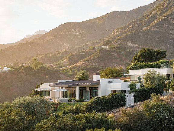 Resting above Montecito on a private, gated knoll, this sleek contemporary home owned by legendary actor Christopher Lloyd boasts panoramic views of the Pacific, Channel Islands, and Santa Barbara harbor. Recently remodeled with clean lines and a modern aesthetic, the 2-bed, 2-bath main residence offers seamless indoor-outdoor living, with floor-to-ceiling glass framing every sunset. Expansive decks invite cocktails or quiet mornings above the clouds.