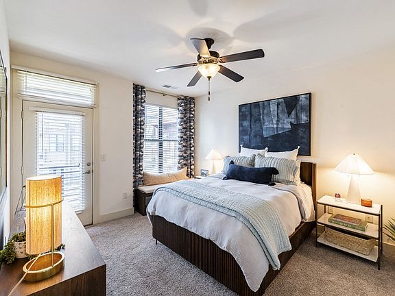 - Exterior features: Additional tiled shower with rain shower head*, Breakfast bar/island with pendant lighting*, Contemporary track lighting, Electric car charging stations, Ensuite bathroom*, Expansive closets, Floor-to-ceiling windows*, Fully equipped fitness studio, Lynx light rail stop adjacent to the community, Multiple gourmet coffee bars, Oversized soaking tub with rain shower head*, Pet Park, Premium granite with undermount stainless sink, Private work pods, Sleek, wood-like plank flooring in living areas, View Type: Uptown skyline views*