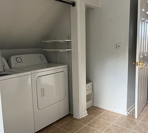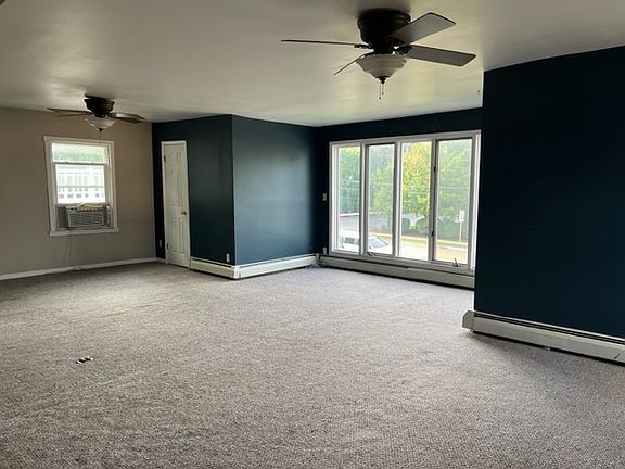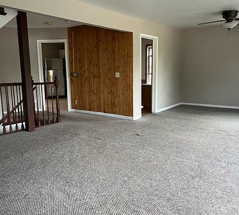 This is a two-story apartment over an office space. The first floor has new carpet, a large kitchen, private entrance, one bedroom, and one full bathroom. The second floor has a large stairway, large full bathroom with full size washer and dryer and the other two bedrooms. There is a first-floor main covered entrance also that is shared with the office entrance. Heat is included with this unit.
