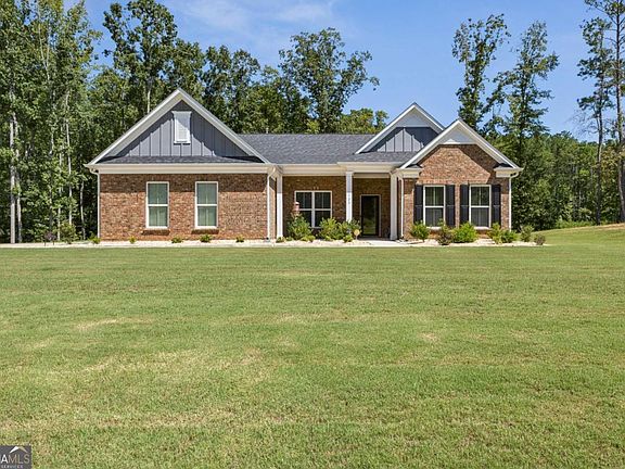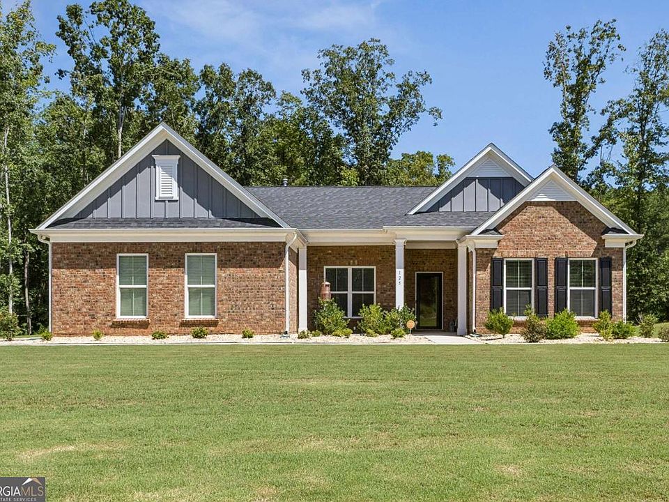 Hard-to-find TRUE ONE-LEVEL LIVING in this newer construction home in the Brighton subdivision. Assumable 5% VA loan. This thoughtfully designed home offers an open-concept layout on a private and level lot, combining comfort with style. Inside, you'll find three spacious bedrooms and three full bathrooms, plus a private library and bright sunroom, perfect for working from home or relaxing. The gourmet kitchen is a showstopper, featuring Silestone countertops, an oversized island, stylish vent hood, gas cooktop and oven, and upgraded finishes - ideal for entertaining. The owner's suite offers you a private retreat with a tray ceiling in the bedroom, large walk-in closet and luxurious bathroom details, while the mudroom cubbies by the interior garage entry keep everyday life organized. Throughout the home, hardwood flooring and high-end upgrades add warmth and elegance. This home truly blends function and luxury - ALL ON ONE CONVENIENT LEVEL. Beautiful tree-lined 1+ ACRE LOT (lot extends up ridge to right of the house and beyond lawn in rear). ***HOA includes business-class internet service.*** Zoned for highly sought after Fayette County schools. Close to Trilith/Trilith LIVE, Fayette Pavilion, and the highly anticipated US Soccer National Training Center. Easy access to the airport and downtown Atlanta.