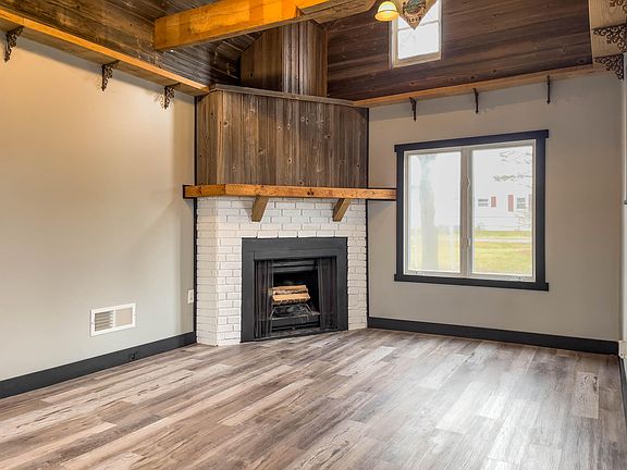 Looking for a renovated and move in ready home? Looking for a home with an extra large yard double lot? Look no further because you found it right here! This one level home offers the new owners 2 bedrooms, with the possibility of a 3rd bedroom. Upon entry into the home, you immediately notice the cathedral ceilings in the living room area. The high ceilings gives this area great character along with a rustic feel. The living room offers a corner fireplace, a large, West facing window and at one end, there is a loft area that overlooks the living room. Off of the living room there is a bonus room that could be used for a home office, den/study or a possible bedroom. Through the living room is the eat in kitchen. The kitchen offers black cabinetry, new tile backsplash and new butcher block counter tops. The bathroom has been completely updated and features a barn door. There is a large laundry/mudroom and a partial basement which houses the mechanicals. Other features to the home is the large front porch, lots of off street parking and as mentioned before, an oversized, double lot is a bonus for those looking for a large yard. Updates to the home include a new metal roof, new furnace, water heater, all new flooring and 6 new windows. Great home, great price!