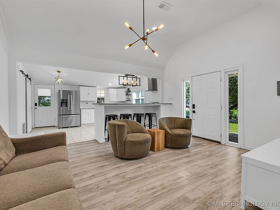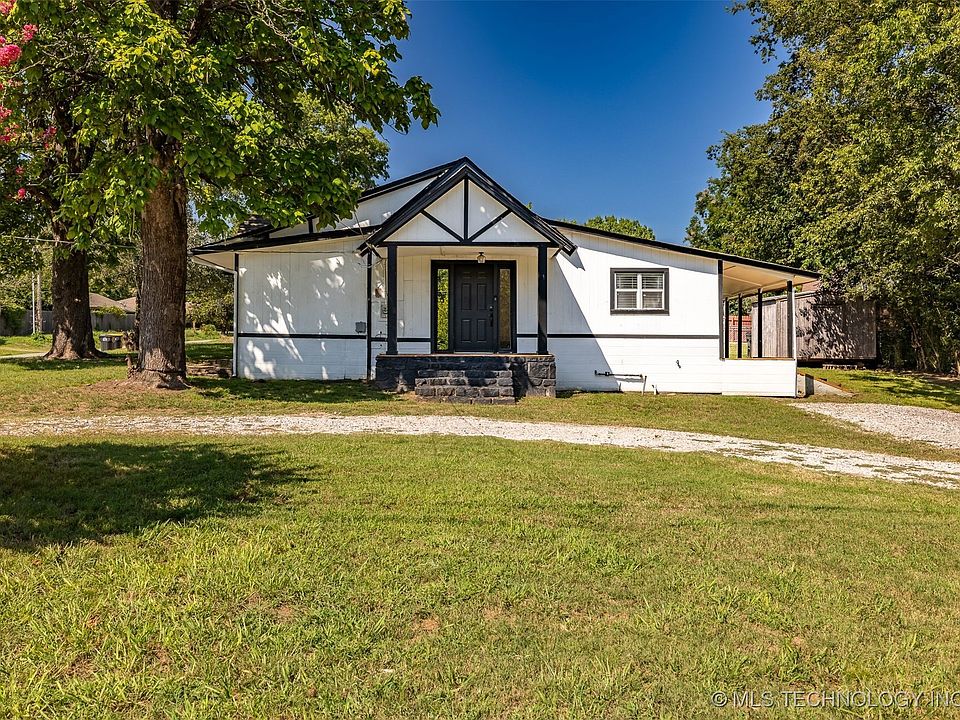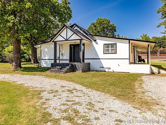 Light-Filled Corner-Lot Bungalow in the Heart of Coweta! Updated in recent years, this 2 Bedroom, 2 Bathroom home also includes an Office that could serve as a 3rd Bedroom, offering additional versatility. Natural light fills the interior, highlighting the bright Kitchen with granite countertops, stainless steel appliances, ample storage, and adjacent Utility Room. Newer flooring and paint complement the updates, which also include a 2021 roof, newer HVAC system, and all-electric efficiency. Outdoor living shines with a spacious covered front porch and a generous yard framed by mature trees, with a serene creek bordering the lot for added appeal. As an added bonus, the property includes a cellar that offers extra storage and could also function as a storm shelter.