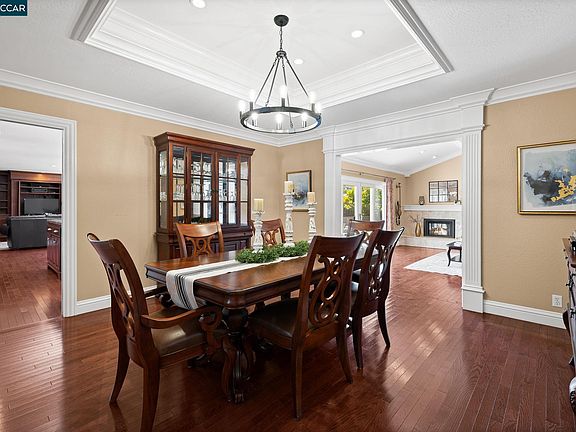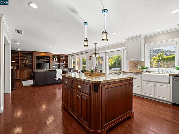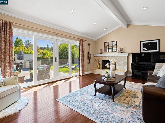 Set on a 13,000-square-foot lot in Moraga’s desirable Camino Woods neighborhood, this beautifully maintained single-story home blends timeless design with modern comfort. A formal dining room opens to a living room with elegant millwork, fireplace, and abundant natural light. The kitchen features a center island, Thermador gas range with griddle, built-in refrigerator, and a breakfast nook framed by bay windows overlooking the backyard. The family room includes custom built-ins and opens outdoors, ideal for entertaining or everyday living. The primary suite offers dual closets, direct yard access, and a spa-like bath with a jetted tub, dual shower, and double vanity. Two additional bedrooms share a spacious hall bath. Additional highlights include a finished garage, recessed lighting, and crown molding throughout. Outside, enjoy an outdoor kitchen with built-in pizza oven, lawn, hot tub, and patio designed for gatherings. Close to top-rated Camino Pablo Elementary, Joaquin Moraga Intermediate, and Campolindo High, with easy access to Orinda BART, Highway 24, and Moraga Center’s shops, cafés, and farmers market.