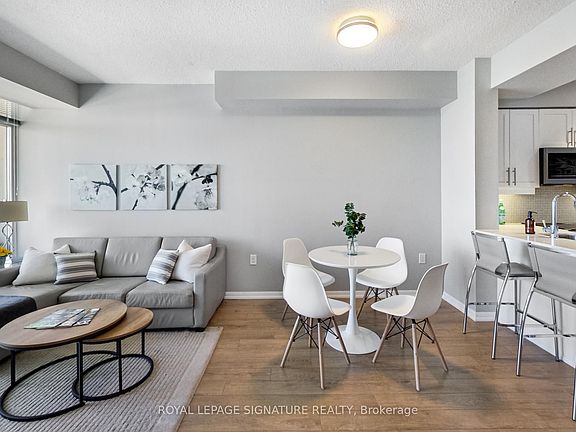 Simply one of the best condo offerings in Liberty Village right now! This picturesque 1-bed, 1-bath stunner soars above the city on the 28th floor, offering postcard-worthy north-facing views that are truly unparalleled. With just under 600sqft of thoughtfully designed living space, the smart open-concept layout delivers both functionality and style. Step inside to a bright, spacious interior featuring a fully stocked kitchen with granite counters, tiled backsplash, full-sized stainless steel appliances, white cabinetry, and a versatile island/breakfast bar perfect for cooking, entertaining, or working from home. The living/dining areas are flooded with natural light thanks to the floor-to-ceiling windows, which lead to your private balcony, an ideal retreat to unwind or host friends.The primary bedroom is a serene sanctuary with custom blinds, a generous double closet, and breathtaking city views. A walk-in entry closet ensures plenty of storage, while the spa-inspired bathroom also features granite finishes. Includes one parking spot and one storage locker, all with low maintenance fees so you can focus on enjoying the good life.This exceptionally quiet, well-managed building offers outstanding amenities: 24-hour concierge, gym, sky lounge/party room, rooftop terrace, and visitor parking. All of this in a prime Liberty Village location steps to Metro, shops, TTC, restaurants, a pedestrian bridge to King West, and even a dog park right at your door. A true urban oasis in one of Torontos most vibrant neighbourhoods. Don't miss this one!