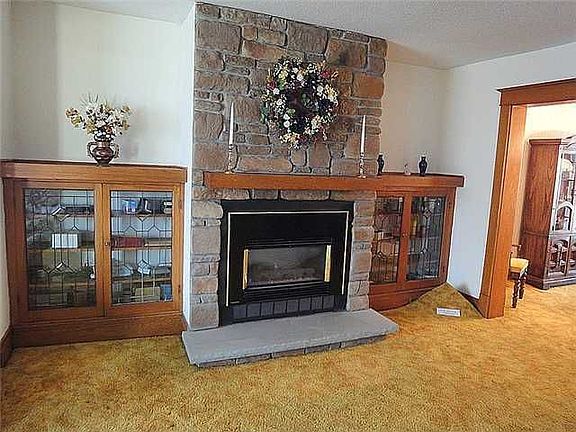 Old World Charm! This 3 bedroom, 1.5 bath home has gorgeous woodwork and hardwood floors under the carpet! Eat-in kitchen w/pantry! Formal dinning room w/french doors leads to covered concret patio and lovely yard! Huge living room has updated stone fireplace (gas insert), flanked by leaded glass, double door bookcases! Master bedroom w/walk-in closet, faux FP and crownmolding! Immaculate full walkup attic has so much potential! Clean dry basement has vented glass block windows and tons of beautiful wooden cabinets for storage! Newer: siding, gutters, windows, roof-front and garage! Beautiful!
