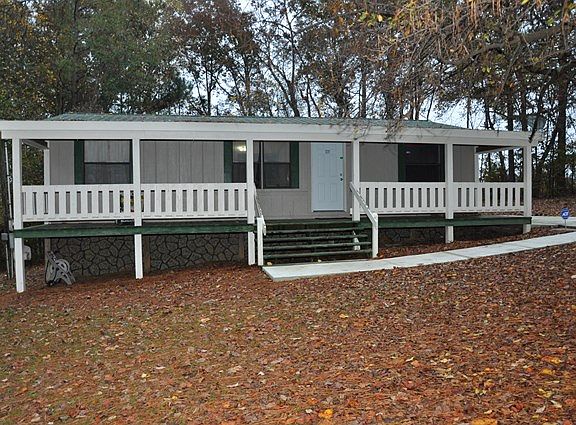Bring your rocking chairs! 3 Bedroom, 2 Bath home with HUGE front porch addition nestled on a desirable 3 acre wooded lot with PRIVACY. Well maintained mobile home has been in the same family since new. Gated entrance for extra security. METAL ROOF. Per Seller, concrete parking pad and sidewalk poured in 2016. Well-kept gravel driveway. Per seller, well pump 5-6 years old. Nice metal storage building and workshop has power, workbench and ramp. Per seller, 2x6 exterior walls, 2x4 interior walls and plywood sub-flooring! Large, NEARLY NEW window A/C unit bought in 2017 cools entire home per seller. Sizable 2-yr old (per seller) space heater for keeping you warm this winter. Washer, dryer and refrigerator stays.
