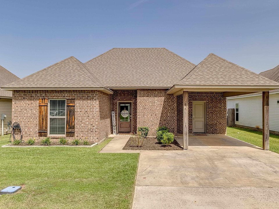 This 3-bedroom, 2-bathroom home in Calhoun features an open concept living, kitchen, and dining area, perfect for entertaining. The kitchen has a large island, granite countertops, and stainless steel appliances. The master suite includes a walk-in closet and a bathroom with a double vanity. Additional features include a utility room, attached carport, covered patio, and a large fenced-in backyard. With 1,135 square feet, this home is well-maintained and ready for new owners. Contact your realtor to schedule a showing.
