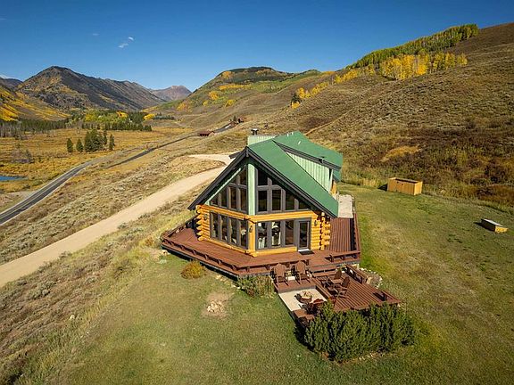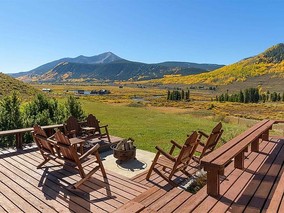 This is a very rare opportunity to own a larger parcel of land with a main residence and an accessory residence with no HOA and stunning views of the entire Crested Butte and Slate River valley. The 10.35 acres hillside setting overlooks open space, Peanut Lake, Mt. Whetstone, Mt. Emmons and the Oh-Be-Joyful recreation area. Enjoy southern and western exposure with windows from the floor to the top of vaulted ceilings for all day sun and beautiful sunsets. The home features 4 bedrooms including a large master suite with a private deck, 3 bathrooms, a game room and a wood burning fireplace as a focal point in the open great room. There is an additional loft space overlooking the living room that has a television. The open kitchen has granite countertops, newer appliances and lots of cabinets and storage. The home is being sold fully furnished excluding the artwork and a few personal items. The 608 square foot Guest house is a comfortable private space with a full kitchen, living area and includes 1 private bedroom and a 3/4 bath. Perfect for overflow guest space, a kids hangout are or even used for an on site caretaker. It is located above a clean and organized storage area/shop.There are trails on the property for horseback riding or hiking and very close access to popular mountain biking and hiking trails including Lupine, Gunsight and the Lower Loop. The expansive outdoor space includes a level grassy yard, large deck, and a fire pit all overlooking the meandering Slate River below. All this and only five minutes to the town of Crested Butte or the ski area.