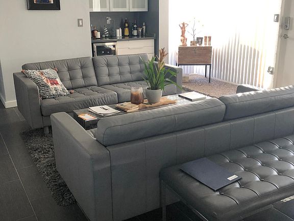 THE TOTAL PACKAGE! An incredible home with a sleek European design AND the furniture to match! Contemporary furnishings (available for purchase) complete the chic 2017 fully remodeled interior while fine finishes add a touch of flair. Beautiful use of light and space in the sizable family room, dining area and sunlit den. Floor-to-ceiling view windows are dual-pane, bathing the formal living areas in soft natural light. Redone modern kitchen has lustrous quartz counters, lacquered white cabinetry and stainless appliances. Glass-front cabinets and a dual row of deep drawers in the island. The cozy fireplace and bar w/beverage fridge are perfect for entertaining. Restyled baths enjoy rain-head jetted shower columns. Tiled dining patio and easy-care artificial turf out back. Community pool. Additional Amenities & Features