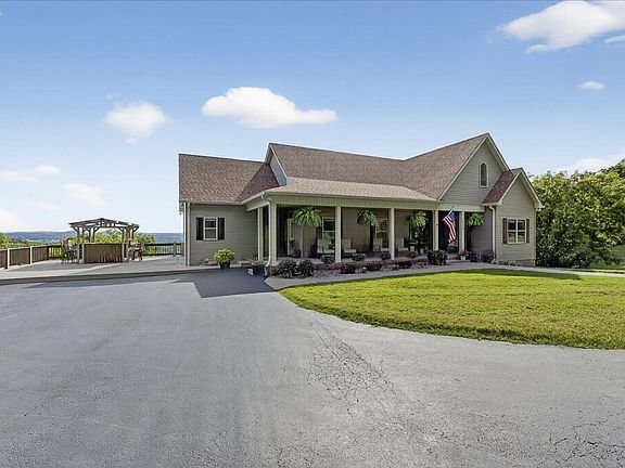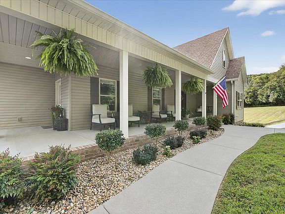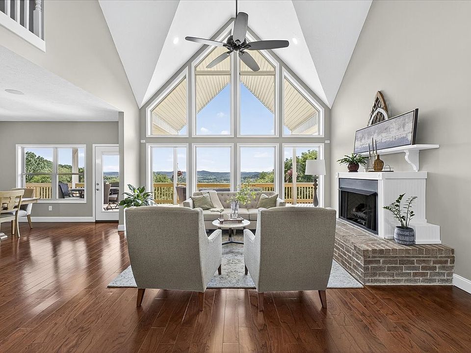 Southern Elegance with Rooftop Sunsets and River Valley Views. Open the front door to a dramatic two-story wall of glass, framing breathtaking vistas high above the Cumberland River Valley. Designed for seamless indoor-outdoor living, the home is surrounded by a charming Southern porch, an expansive deck, and a walk-out patio, giving nearly every room access to fresh air and sweeping views.