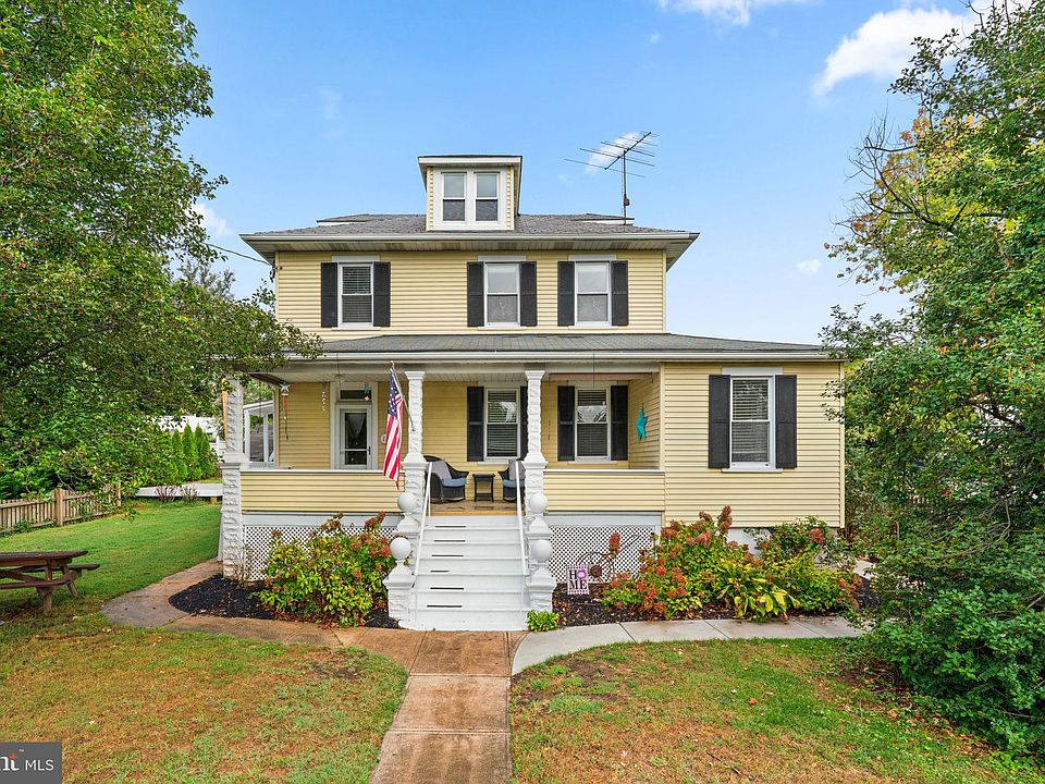 Vintage vibes and curbside charm in this 1914 Foursquare, with its wide covered porch, unmatched 0.68-acre lot, and picturesque fully-fenced yard. Set well back from the road, this home offers a versatile layout with space and flexibility on every level. Step into the warm and welcoming foyer to find high ceilings, newly refinished hardwoods, and wide original trim that reflect the home's Victorian character. The broad living room flows into the airy dining room through pocket doors, and a true bay window adds architectural interest and natural light. The kitchen is both spacious and stylish, with ceramic tile flooring, butcher block counters, glass tile backsplash, and stainless appliances. A fourth bedroom is tucked off the living room, and a full bath with a copper bowl sink, and convenient laundry room complete the main level. Upstairs, you'll find three well-sized bedrooms and a full bath with ceramic tile flooring and a freestanding copper tub - equal parts modern and memorable. Hardwood floors and wide trim continue throughout, along with a walk-in linen closet off the hall. A full walk-up attic offers nearly 800 square feet of floored storage - easily accessible and well-suited for future finishing. The lower level offers a full unfinished basement with inside and outside access - ideal for storage, hobbies, or workspace. Heating, cooking, and hot water have all been converted to natural gas for added efficiency. Outside, the yard offers an impressive amount of space, with a picture-perfect shade tree in the lush front lawn, a wide side yard, and a practical rear yard where the deck overlooks a kitchen garden and a gingerbread-style shed. The entire yard is fully fenced for peace of mind. Conveniently located near UMBC, CCBC, and downtown Arbutus, home to locally owned shops, restaurants, and community events. Patapsco State Park and major commuter routes are also nearby, with quick access to MARC, 695, 95, and 295 for an easy commute in every direction. Well cared for throughout,from the cheerful siding outside to delightful details within - this home is unmistakably one of a kind.