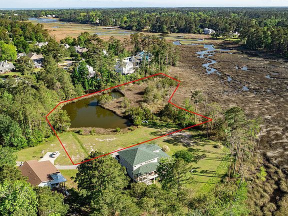 Surrounded by coastal beauty, this expansive property offers endless potential. The lush lawn flows seamlessly into panoramic marsh views, while a spring-fed tidal pond off Bradley Creek invites quiet mornings on the water.