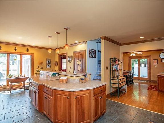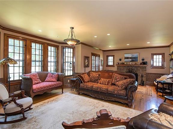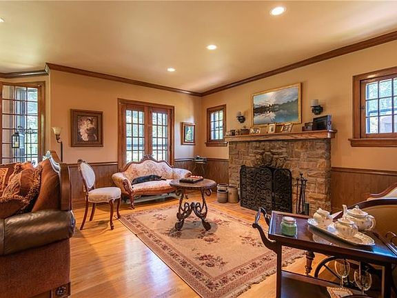 One of a kind, classic 3 story Tudor, 1 block from Buhl Park & Sharon schools. Total privacy as you enter driveway with its arborvitae lined yard & beautiful landscaping. 2 patios - one with stone pavers, one with awning cover and flagstone. Over-sized 2 car garage. Main side enclosed vestibule leading to grand living room with wall of windows & French door, wide crown moldings, hardwood floors, stone fireplace with large mantle & ceiling LED lights. Formal dining room has window seat, oak floors & moldings. Gourmet kitchen has cherry cabinetry, huge center island with bar stool seating. 12x18 separate breakfast room with wet bar, wine cooler cabinetry & outside door to patio as well as half bath & mudroom. Spacious 2nd floor master suite has 2 closets, fireplace, oak floors, moldings & private office with built-ins that leads to master bath with back to back sinks, Jacuzzi tub, shower & laundry area. 2 more bedrooms & full bath complete 2nd floor. 3rd floor has 2 bedrooms, playroom...