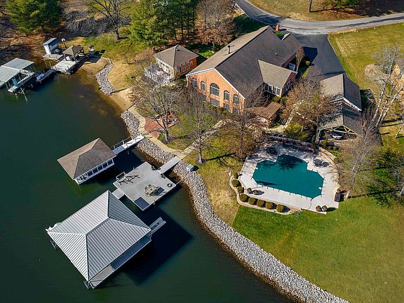 No-wake waterfront estate on Lake of Egypt that has every amenity you can dream of. This home is over 5000 square feet of luxury. The main level of the home hosts formal dining, an exquisite custom designed chef's kitchen with granite countertops, an expansive stone fireplace, and walls of windows overlooking the lake. The master suite has a conversation area, fireplace, and his/her closets. Second en suite on main level, also. Lower level has a second full kitchen, recreation area, living and dining areas, a bunk room that sleeps 9, a craft room/4th bedroom, as well as an infra-red sauna for 2 and custom closets. There is a cedar pavilion extending from the garage, complete with wood-burning stone fireplace, sitting/dining area, overlooking the heated 18x36 salt-water pool with lounge shelf. A cedar pergola covers the outdoor kitchen and bar. The boat dock has 2 slips and 2 lifts, a pwc docking station, a 27x24 sunning deck, as well as a swimming deck with slide. Want out of the sun? Hang out inside the screened-in cabana, complete with bar, overlooking the sand beach, boat dock, and brick firepit. Having guests? The guest home has its own kitchen, composite deck, and fireplace. Available, SEPARATE LISTING, is a 40x72x14 pole barn at the end of an asphalt drive directly across from home. It is fully insulated and has 14' walls and doors. There is a loft, a custom storage room, and an office with a 3/4 bath.
