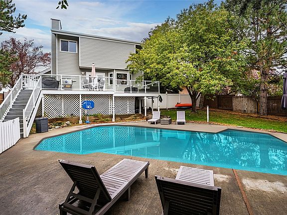 This stunning home is just what you are looking for! Right as you walk in you will be welcomed by vaulted ceilings, custom windows, and a cozy fireplace. It has multiple living areas which include a living room, den w/ additional wood fireplace, and a large basement entertainment area. Just off the den you walk out to a gorgeous composite deck with glass railings making sure to not obstruct your views that overlook your own well maintained in-ground HEATED POOL. Deck has custom gas firepit and gas line for bbq. The kitchen is open and has room for breakfast nook. Laundry is on the main floor just off the garage. Updated 1/2 bath on the main floor for guests. Upstairs you will find the primary suite w/ensuite bath & 2 extra bedrooms and bath. Bsmt has 2 additional bedrooms and bathroom. Very large driveway for parking extra cars or toys. Buyer and Buyers agent to verify all info.