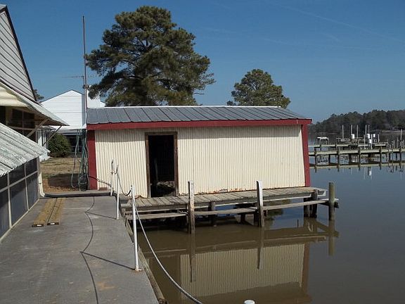 Cottage with 3 bedrooms (2 bedroom septic system), 1 bath, family room with fireplace, kitchen and dining area and screen porch. The family room, kitchen and dining area has beamed cathedral ceilings, insulated windows and a heat pump & A/C. Appliances convey. There are 2 outbuildings, a L shaped pier and a boat house. Also conveying is ownership in a boat ramp and a lot on the Rappahannock.