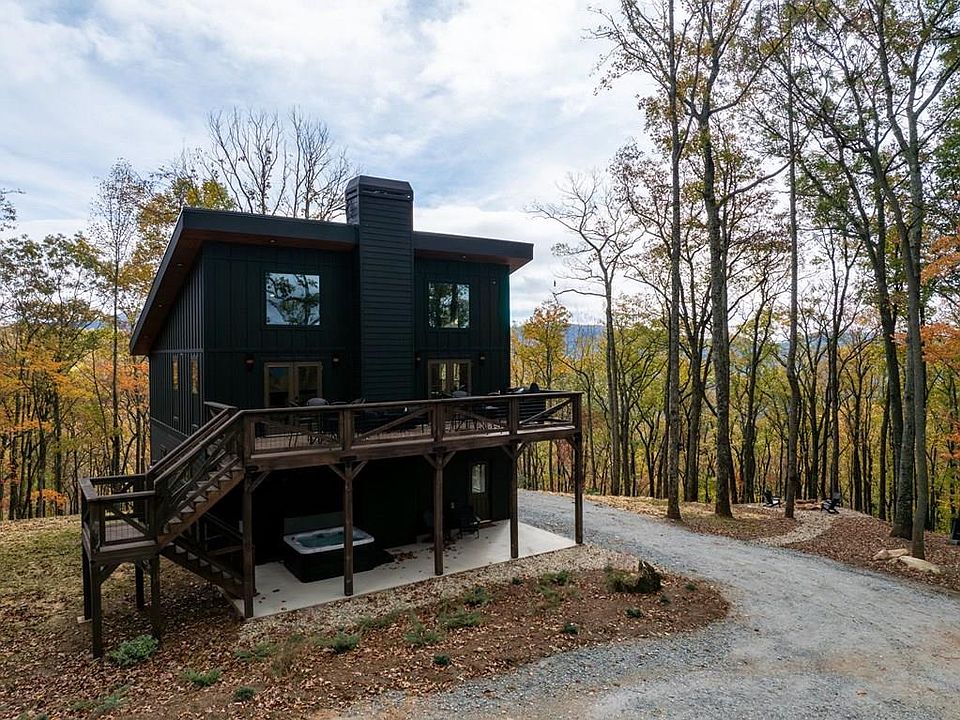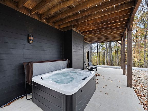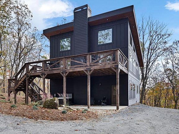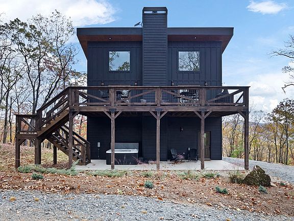 Nestled within the North Georgia Mountains, this property provides a peaceful retreat. Suitable for either a full-time residence, secondary home or investment property- it is sure to impress. The main floor boasts an open family and dining room with pine floors and an oversized woodburning fireplace. The kitchen is equipped with Black Stainless appliances, stone backsplash, and leathered granite. The primary suite features a tiled shower, separate soaking tub, and electric fireplace. The upstairs loft is ideal for relaxation with two full-sized beds and stunning views. The lower level features a second living area/media room with a third full bathroom and wet bar with refrigerator hook up. A bedroom with a queen-sized bed is perfect for guests. The bunk room currently accommodates two queen-size beds and two twins. A metal roof perfectly complements the exterior finishes and provides a soothing sound on rainy nights. Spray foam insulation allows for energy efficiency. Situated on 2.13 very secluded acres on a private, gated road. Enjoy the beautiful sunsets from the front porch or hot tub!