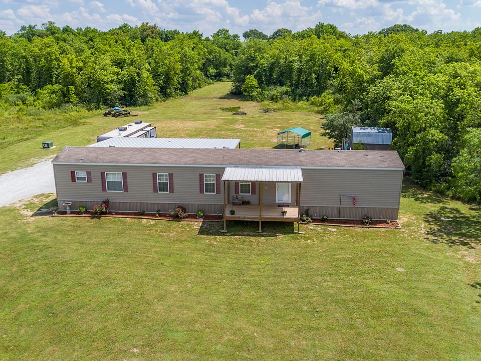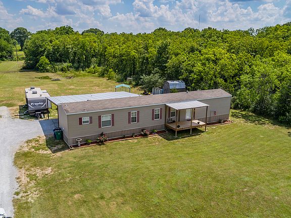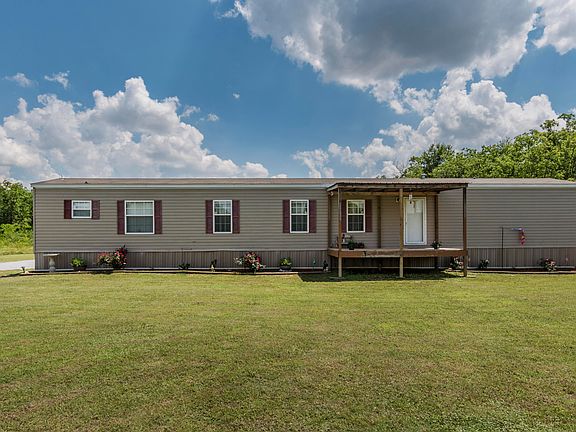 Country living at it's best! This property has it all. Acreage, a three bedroom, two bath home, and outdoor storage. This well maintained mobile home features an open kitchen with a snack bar over looking the living area and gleaming wood cabinets. Beautiful flooring throughout, and a grand master bedroom. The master bathroom boasts a corner garden tub and a separate shower. There is a large patio off the back of the home, perfect for entertaining, and a wonderful deck off the front. There is plenty of room to roam on the beautiful 5 acres, with water towards the back of the property, this would be a great spot for horses or livestock. Don't miss your opportunity to own your own piece of paradise.