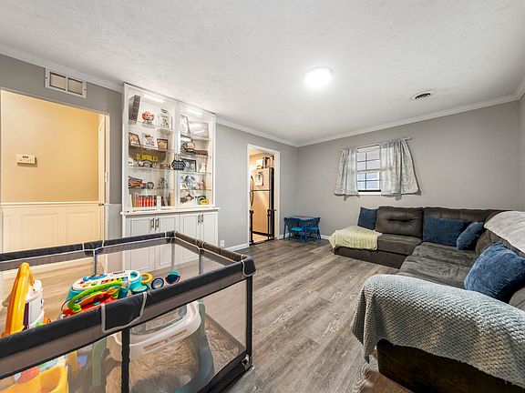 Welcome to this move-in ready 3 bedroom, 1 bathroom home with updates. The living room has vinyl flooring and a built-in cabinet. The updated kitchen has been updated and features ceramic tile floors, white cabinets, stainless steel appliances, and a breakfast bar. Just off the kitchen, you’ll find a separate laundry area for added convenience. Enjoy cozy evenings in the family room, complete with a fireplace and additional living space for relaxing or entertaining. The bathroom has been tastefully updated, and the entire home is finished in neutral tones for a bright, clean feel. Outside, you’ll love the covered front porch, a large fenced-in backyard, and a huge shed providing ample storage.