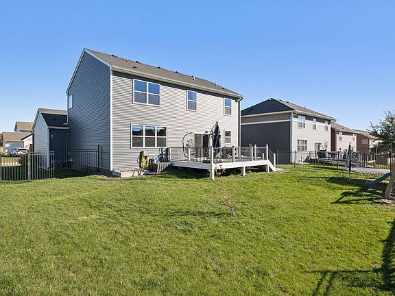 Live in the demand Oak Tree neighborhood! Upgraded and improved two-story with 4 beds up and partially finished lower level + unfinished 5th bedroom! You will love having the aluminum fence, maintenance-free deck, hot tub, gutters, irrigation system, water softener, humidifier, new light fixtures, wallpaper, window treatments, faucets, and more! Open concept floor plan with lots of large windows fill the home with natural light! Large primary suite with full bathroom, dual vanity, and walk-in closet. Upper level laundry! Kitchen features center island, tile backsplash, stainless steel appliances, and gas range! New washer in 2025. Lower level plumbed for another bathroom. Maintenance-free siding. Garage door openers on both doors. Lovely front porch and wonderful paths & parks nearby, all in a convenient location! Original owner, and you can be next! This home has so much to offer, schedule your tour today!