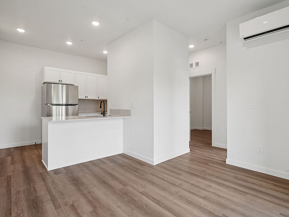 Each residence is designed with your modern lifestyle in mind. Inside, you'll find open-concept layouts featuring sleek stainless steel appliances, including built-in dishwashers, contemporary cabinetry, and elegant hardwood-style flooring that adds warmth and elegance to every room. High ceilings and expansive windows flood your home with natural light, creating an airy, inviting space. Stay comfortable year-round with in-unit air conditioning and enjoy the convenience of a washer and dryer set in every home.