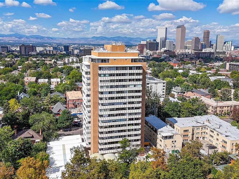 Rare opportunity for Modern Highrise in the coveted Embassy House living with stunning Denver city scape and full mountain views in this tastefully updated condominium with an open floor plan. This coveted condo is adjacent to Cheesman Park in iconic Humboldt Historic District. Ideal for today’s lifestyle and resort style amenities including a fitness center, indoor/outdoor pool, community lounge, party room, daily front office staff, private access to Cheesman Park, a guest suite on the top floor & guest parking. Secure underground parking with assigned parking place #34. and generous storage unit #33. Private gated access to Cheesman Park. Sunny open floor plan with floor to ceiling windows and sliding door to balcony with unobstructed views. With Secret Garden Café overlooking Cheesman Park and conveniences on 12th Ave it is ideal convenient city living with easy access to Congress Park and Cherry Creek. Remodeled Primary bath. Contemporary remodel of Kitchen with island and open to living room which is open to balcony with stunning views. Custom doors throughout and mirrored closet doors and custom built-in shelving and drawers. All balcony windows replaced with tinted, double-paned windows. North enclosed balcony is ideal Work From Home Office or Studio with stunning city and mountain views to Longs Peak.