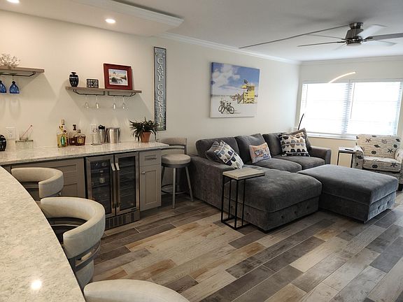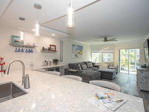 AVAILABLE SEPT AND OCT 2024. UNIT IS UNAVAILABLE NOV THRU APRIL, 2025. This 2nd floor, completely renovated 2 bedroom, 2 full bath condo in Siesta Harbor with private beach access and overlooking its own private harbor is the perfect getaway to the #1 beach on Siesta Key in Sarasota, Florida. This unit is located near the community pool and hot tub along with guest grilling stations and shuffleboard. The clubhouse has a fitness center, sauna and ice machine. The unit sleeps up to 4 and is located in a 55+ community (one person must be at least 55 years of age to rent). Siesta Harbor community is not pet friendly and pets are not permitted on the property nor in the units. Fully equipped for your beach days with everything from a wagon to tote your stuff to chairs and a cooler, you will certainly feel as if you are vacationing in a coastal village surrounded by fun and beachy decor without having to bring a thing with you from home. This unit is fully stocked with beach towels, linens and bath towels in addition to paper products to start your Siesta Key journey. From the palm trees dotting the landscape to the view of the harbor where boats come in and out of the Intracoastal Waterway, shops and restaurants are just steps away to the south of this complex. The complimentary trolley service which stops right outside the property on Midnight Pass Rd., provides you with all of your transportation needs while you are on the island, never needing to leave our little slice of paradise on Siesta Key. The newly renovated, large kitchen with new appliances and oversized eat in countertops makes it so simple to prepare any meals you need to make. There is also separate wine and beer refrigerator along with everything you need to make that perfect cocktail in the evening or to enjoy a special, local beer. The master bedroom is equipped with a king bed and has a walk in closet with plenty of space for all of your clothing along with a private bathroom. The guest bedroom has 2 twin beds. Both showers in the 2 bathrooms are walk ins, without tubs. Walk down 2 buildings in the complex to the Intracoastal Waterway where you can watch the boats go by or throw a line in the water and catch your dinner from the fishing pier. Relax on our lanai, overlooking the boat basin with your favorite beverage or after a long day spent with your toes in the whitest, finest sand in the world. We know you will love our little slice of paradise on Siesta Key and we can't wait to share it with you. This is a 55+ community and requires the lessor to be at least 55 years of age. Pets are not permitted and the unit is 100% non-smoking. The unit comes with one covered space for parking and has a 30 night minimum stay associated with the rental with a maximum stay of 6 months. The stay includes utility costs and a streaming service. Fees include one time cleaning fee of $250 and a $150 non-refundable application fee to Siesta Harbor for background screening at least 30 days prior to arrival.