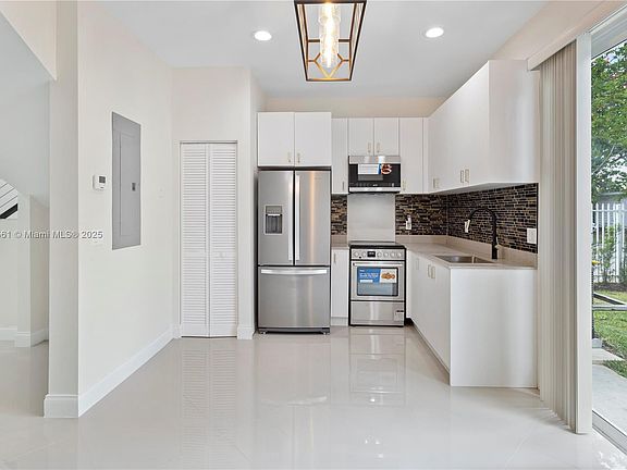 Welcome to this new & contemporary, energy-efficient, 2-story duplex with high ceilings and an interior area of 1,300 Sq.Ft. Enjoy a spacious 3 bedrooms, 2.5 bathrooms floor plan, with stylish porcelain and eco-wood flooring, and a modern kitchen equipped with quartz countertops and stainless-steel appliances. This property includes built-in closets, in-unit washer and dryer, ceiling fans in the bedrooms, pre-wiring for cable and internet, front door smart lock, and assigned parking. Benefit from a private fenced-in backyard and high-efficiency air conditioning. Tenants are responsible for FPL, W&S, Cable, Internet, and Alarm; while landscaping is covered by the landlord. No sub-rentals or short-term rentals allowed. Experience the best of modern living in this new construction duplex.