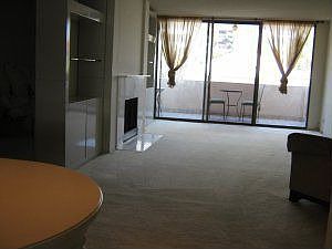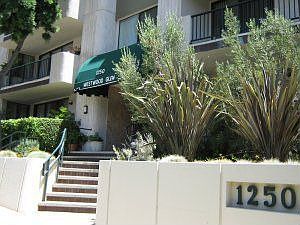 Spacious split bedroom floor plan with open living room-dining room and large balcony in desirable building just South of Wilshire Blvd. near Ashton Avenue. Great building amenities include pool, spa, sauna, exercise room. Two side by side parking spaces and additional storage inexcellent location in garage. HOA dues include earthquake insurance.