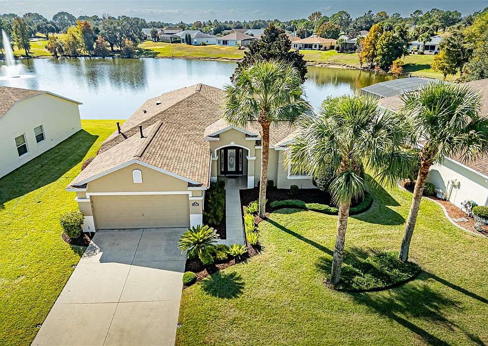 SUMMERGLEN GOLF COURSE COMMUNITY Lot 18. WATER VIEW! TURNKEY! Seperate Guest Suite (Casita). This absolutely gorgeous 2004 Miramar III model is a 3-bedroom 3-bath home with so much customization that you will be in awe. This custom updated home is so unique from any other home you will see. The CUSTOM WOODWORK throughout is just gorgeous. CROWN MOLDING in every room, along with custom 5-inch baseboards, carved wood door and window toppers, along with PLANTATION SHUTTERS in every room. Walk in to the main home and feel like you are part of a magazine cover. It all starts when you walk thru the front door of the home & enter a beautiful large private court yard with newly screened birdcage. To your right, you enter the guest suite (casita) w/full bath, walk in closet, large living & sleep area with murphy bed and w/Laminate wood floors. The bath has one sink with GRANITE countertop, walk-in shower, and an exit door to the court yard for convenience. Across the court yard you enter the main living area either through the main interior entrance door or through sliding glass doors to the master suite. The master suite includes a custom bath with walk-in closet, walk-in shower, dual sinks with GRANITE counters, and a private water closet. A 2nd bedroom & full bath in the main house are made private by a custom barn door that turns this into a private suite for guests. The large kitchen w/like new STAINLESS appliances has GRANITE counters, privacy to the living room or open the shutters to be part of the living area. The kitchen has been customized with real wood cabinets from floor to ceiling. Even the refrigerator looks like part of the cabinetry. Solar tube provides bright natural lighting. Off the kitchen is a dining area looking out to the front court yard. The built in wall cabinet is uniquely builtin to the wall niches. The living room is so spacious that you could make part of it a small dining area if needed. Built in cabinetry over the GAS FIREPLACE to include the mantle is just spectacular to see. The sliding glass doors take you out to the newly screened lanai area overlooking the beautiful pond with fountain. The laundry room, which includes washer and dryer, also has custom-built wood cabinets for lots of extra storage. The garage includes a great screen that operates just like the main garage door. No getting out of your vehicle to open and close. Home includes a new water softener located in the garage, the roof is a 2022. Recently painted exterior, and freshened landscaping. Beautiful wood laminate flooring throughout the majority of the home and tile in kitchen, baths, and laundry room. HOA fee includes mowing/edging of yard, garbage pickup including recycling, Spectrum Bronze Tier 1 TV and 100 Mbps internet, as well as access to all amenities. Did I mention ALL of the community amenities? All this and more located in an active, gated community featuring club house with lounge area, restaurant and meeting rooms, tons of activities & 70 clubs plus bocce ball, pickleball, tennis courts, softball, heated pool & spa, RV parking, dog parks, and tons more! All of that along with a $30 food and beverage Credit to be used at the new Community Restaurant, "Tavern at the Glen". Owner is offering a 1-year home warranty. Owner says sell it all - furniture and all appliances included - TURNKEY!