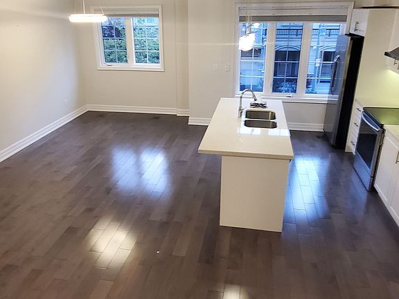 Stunning townhouse with updated open concept 2 Bed+Den,2.5Bath with spacious rooftop terrace. Ideal for small Family. Gourmet White kitchen with quartz counters, island and glass backsplash. Hardwood floors on 2 upper levels and staircase. Primary bedroom comes with walk-in closet and 4 piece ensuite. Another 4 piece washroom for the second bedroom. Lots of upgrades. Minutes to GO station,401, Pickering Town center and restaurants.