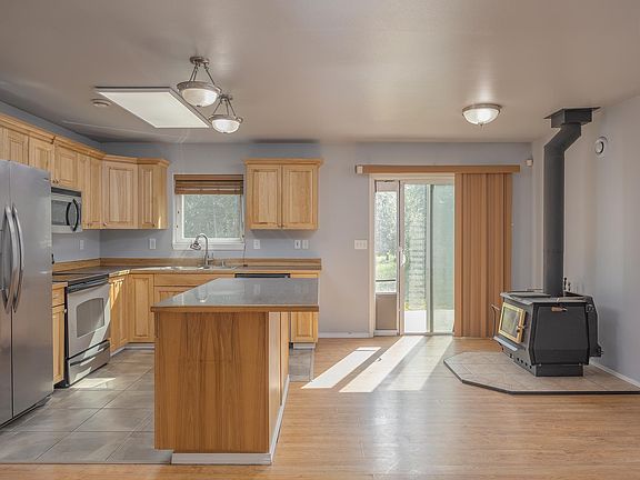 Come see this beautiful and efficient North Pole home! It offers an open living space with a woodstove to chase away those cold winter nights and help offset heating costs. The master features a walk-in closet and private bathroom. The home offers an oversized garage and plenty of outdoor storage. Outside you will find a fenced back yard with a deck, a woodshed, a large storage shed and additional covered storage! Home has a VA Assumable loan for qualified buyers. Come see it today, it won't last long!