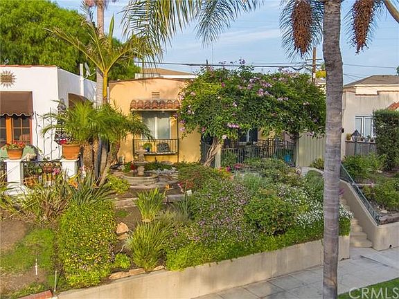 Located on a quiet tree lined street in the Vista Del Oro area of San Pedro, this Spanish stucco styled home oozes with charm and character. Situated above the street level, the beautifully landscaped home offers great outdoor patio spaces for relaxation. The interior features hardwood floors, a remodeled bathroom, dual-pane windows, French doors to the rear patio, and central air-conditioning. The updated kitchen maintains the character of the home with white shaker styled cabinets, a restored vintage stove, and the refrigerator and stack washer/dryer are included. This home does not have a garage, but does have private off street parking controlled by an electric gate. The 1200 block of 11th Street is unusual in that it is a winding street not parallel to the normal San Pedro street grid.