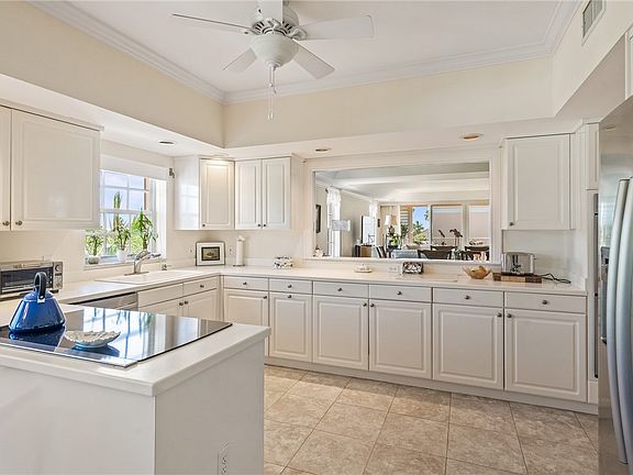 Located in The Moorings, this exceptional 3BR/2.5BA corner penthouse in Southwinds offers abundant natural light and privacy. The 2,684± SF plan features open dining and family areas, tile floors in main spaces, wood floors in bedrooms, and a bright eat-in kitchen. A separate laundry room adds convenience. Enjoy sunrises, serene views, and ocean breezes from the expansive covered deck. Community amenities include private beach access, pool, and spa. Upgraded impact sliders, underground parking, and elevator access complete this coastal retreat. Sizes approx./subject to error.