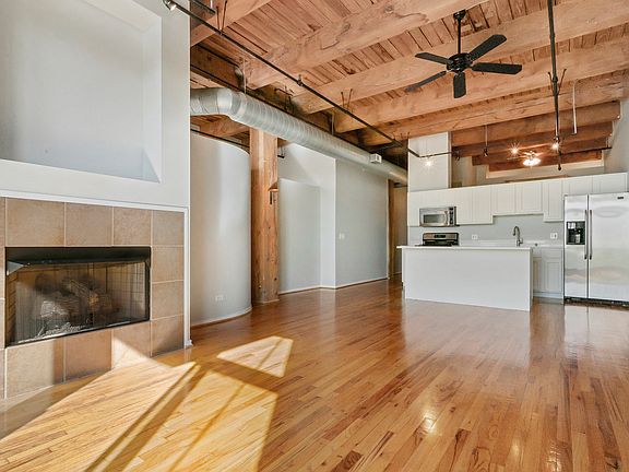 Garage parking included. True loft living. Bright, south-facing split 2 bedroom, 2 bath unit in fabulous West Loop neighborhood. Soaring 14-foot ceilings with timber beams and exposed brick. Unit features a large, open floorplan with private balcony off of the living room. In-unit washer/dryer and fireplace. Large primary bedroom with walk-in closet and private bath. 2nd bedroom is a generous size with nice closet space. Storage cage included and on-site bike room. Great location: Close to public transportation, UIC, Medical District, Loop, Greek Town and expressways. Very close to Target, restaurants, and Skinner Park. A must see.