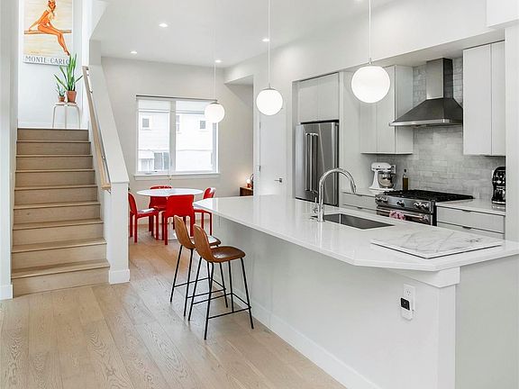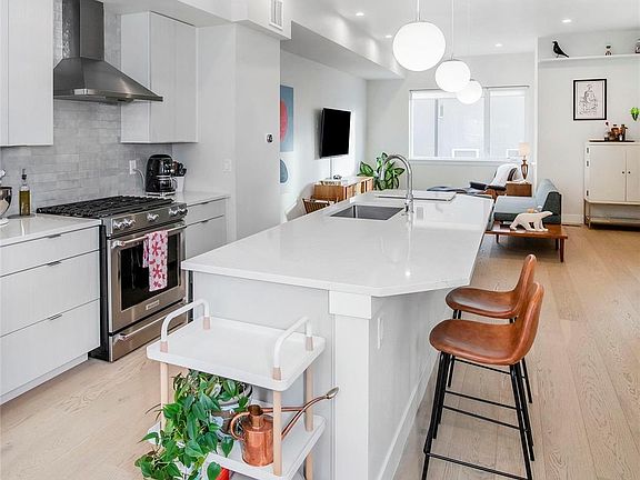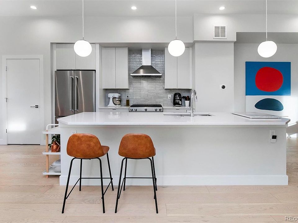 Natural light permeates through every inch of this exceptional West Colfax townhome. This desirable west-end facing residence boasts a luminous 3-bedroom, 3-bath floorplan w/ wraparound decks on all three floors, additionally a rare attached 2 car garage. A spacious living area opens into the kitchen beaming w/ stainless steel appliances, a large pantry and a center island set beneath pendant lighting. Escape to a sizable primary suite boasting a serene bath and a walk-in closet. A secondary bedroom provides space for a home office. Downstairs, a third bedroom w/ a walk-in closet offers a private guest retreat. A dedicated laundry room w/ a washer and dryer set is an added amenity. Custom shelving throughout the home offers additional storage. Admire breathtaking views from an expansive rooftop deck w/ plenty of space for seating. Located just a stone’s throw from the light rail, enjoy easy access to Sloan’s Lake and Edgewater Marketplace. NO HOA - a party wall agreement maintenance fee covers snow removal, landscaping and sprinklers. OPEN HOUSE THIS SAT & SUN 1p-3P