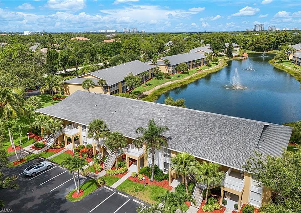 Fabulous end unit with extra windows bringing in natural light. This modern kitchen has new cabinetry, lovely granite counters and extra custom built-ins. There is a separate flex space perfect for office/den or overflow sleeping area. The open and spacious feel is light, bright and airy. Neutral tile floors adorn the foyer, kitchen, flex area and great room. The Owner's suite has upgraded designer carpet, large walk-in closet & private bath. Pocket sliders to the lanai open up the bedroom to the lanai, blending the outdoors with inside. The large lanai is enclosed keeping it spotless during rain storms. There is ample room for both dining and gathering for conversation. Sip coffee and watch the native birds wake up in the mornings. Sip cocktails while marveling at the Naples colorful sunsets in the sky and reflecting in the lake. This unit has a parking space assigned right in front with no other cars next to it. This is the Florida lifestyle you are looking for. No club memberships are required here keeping fees low. Abbey on the Lake is located in the desirable community of Imperial. Nestled close to the white sandy Vanderbilt beach or Wiggins state park. A variety of restaurants and shopping surround the area and the airport for travel is less than 30 minutes away. Take one look and you will want to call this home.