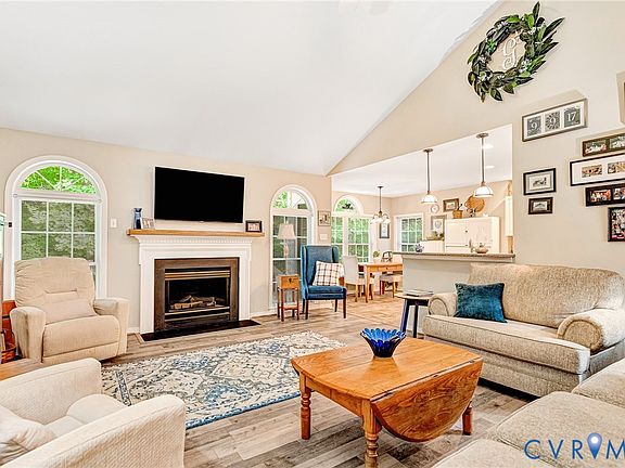 This beautifully maintained ranch home offers an open floor plan, soaring cathedral ceilings, and a cozy gas fireplace. The bright white kitchen shines with Silestone Quartz countertops, a sunny eat-in nook, Bosch dishwasher, Samsung built-in microwave, and high-powered disposal. Primary Bedroom is huge with double closets and Beautiful Renovated Primary Bath- Tile Shower with Glass Doors, Shower Wand, & Custom Seat! Other improvements upgraded to tankless water heater! gutter guards, roof is only a few years old. Step outside to a spacious deck and patio with fenced yard—perfect for summer entertaining!