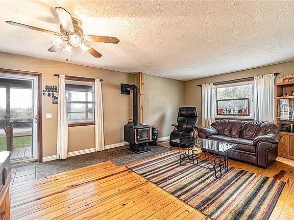 One of a kind opportunity! The perfect city/country location. Don’t miss out on this charming Pea Ridge home sitting on nearly 10 acres. This 3 bed, 2 bath home boasts beautiful wood flooring, a wood burning fireplace, and a thoughtfully designed floor plan. The spacious kitchen offers granite countertops, stainless steel appliances, gas range, and wrap around counter with bar seating. Spend evenings admiring your acreage from your covered front porch or large back patio featuring an outside wood burning pizza oven, firepit, and awning. This beautiful, fenced property is complete with an on site barn(32 x 36), the corral is 60 feet and the perfect spot for cattle or horses. Just moments from downtown Pea Ridge, only 7 miles from Hwy 49 and quick access to Walmart or Tyson Headquarters this home is in an ideal location. Welcome home! SOLD AS-IS