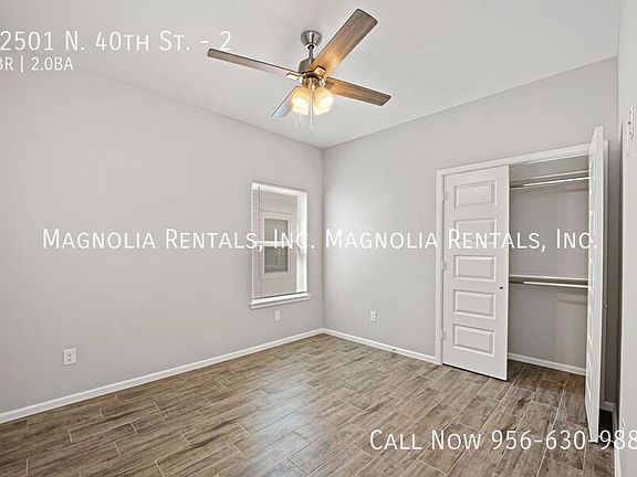 Welcome to 12501 N. 40th, a stunning new construction located in the vibrant city of McAllen, TX. This apartment boasts three spacious bedrooms and two full bathrooms, including a master bath. The open floor plan is accentuated by vaulted ceilings and modern fixtures, creating a sleek and contemporary living space. The kitchen is equipped with stainless steel appliances, including a refrigerator, microwave, and stove/oven, and the convenience of an in-unit washer and dryer. Hardwood floors add a touch of elegance throughout. This pet-friendly apartment (with breed restrictions) offers 24/7 maintenance support for peace of mind. The lease includes water, trash, and lawn care, with the tenant responsible for all electric. Please note, this is a no-smoking property. Enjoy the comfort of a ceiling fan in the living room and the convenience of included appliances. Experience the best of McAllen living at 12501 N. 40th.