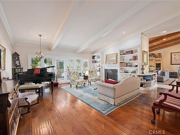 Discover the perfect blend of luxury and comfort in this expansive 6-bedroom, 3549 sq ft single story estate, nestled in the serene and sought after Knollwood Country Club Estates area. Tucked away on a quiet horseshoe street backing to the scenic Knollwood Golf Course, this home offers both privacy and convenience. As you approach, the pristine landscaping, circular driveway, charming front courtyard, and inviting porch create an immediate sense of warmth and elegance. Step inside to find two grand living and family rooms adorned with double fireplaces and vaulted ceilings that enhance the open feel. Oversized French doors and glass sliders frame picturesque views of the entertainers’ backyard, seamlessly blending indoor and outdoor spaces. The dining room opens up to the tranquil front patio, which adds an extra special touch.