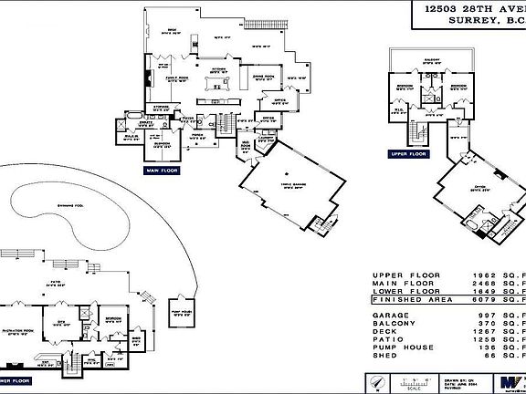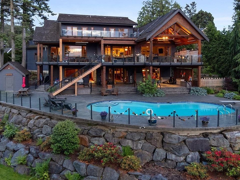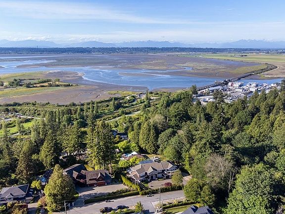 Keith Penner Construction: custom build, magnificent three level w/ walk-out basement. Home: 6,079SF on 27,780SF. Security gated private property. Designed for family enjoyment. Views of Boundary Bay & Nicomekl River + Grouse-Golden Ears. Primary bedroom on main. Vaulted great room w/ lrge hearth fplace, outstanding kitchen, home all wide plank Fir floors. Nano wall, transitions living areas in & outdoors to enjoy privacy & views. 4 bdrms +3 exec offices, 5 bath, gym, steam rm, wet bar, games rm, 3,000SF open & covered decks. Vaulted timber frame - outdoor fplace gathering space w/ infra red heating year-round use. Concrete swimming pool depth 9'-4’5, hot tub, sports crt.& room for pickle ball crt. One current office space is a roughed in in-law suite at 1,000SF. All rooms speaker system.