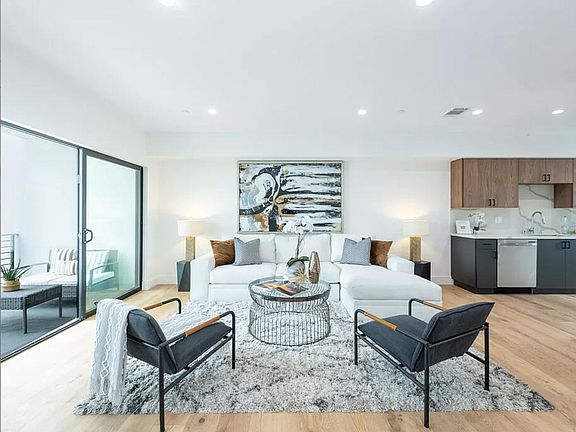 This boutique 4-unit complex is perfect for a single, couple, or small family and is only a few minutes driving distance from the Noho West shopping center with Trader Joe's and Regal Cinemas, as well as Ventura Blvd with Erewhon and Equinox. Quick access to 170 and 101 freeways. Neighborhood is very safe, family-friendly and walkable with plentiful street parking. The sophisticated contemporary design features clean, architectural lines with oversized private 2-car garage set up with EV hookup, private entrances, Nest A/C system, and in-unit laundry room. Light & bright floor plans feature engineered white oak wide-plank floors, black anodized Milgard windows, quartz stone counters, recessed lighting, stainless Samsung appliances (Dishwasher, Dryer, Microwave, Range / Oven, Refrigerator, Washer & Dryer), and Navien 240 tankless water heaters. Wonderful master suite with balcony on top floor plus 2 additional bedrooms. Living room floor with 2 balconies makes for multiple outdoor spaces. Bar has a bonus space for your wine fridge or collection. Common area space includes a spacious and fenced yard with bonfire. Make Valley Village your new neighborhood!