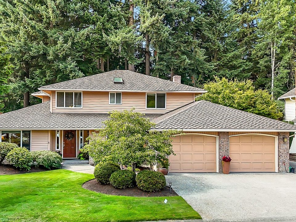 Well-designed kitchenSerene lakeGenerous primary suiteWalk-in closetCozy family roomFormal dining roomLush landscaping