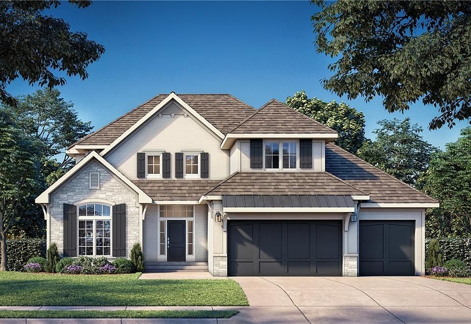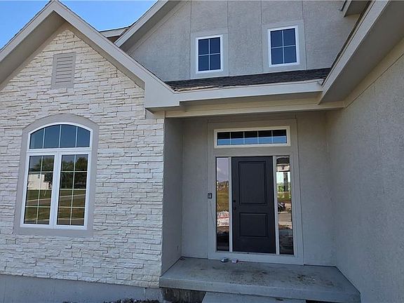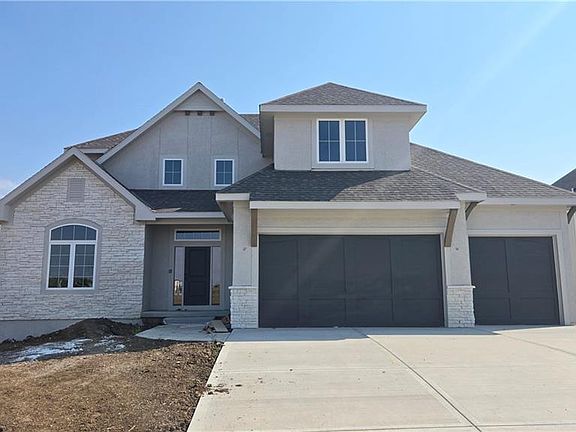 Located on Lot 81 prepare to be wowed by The Santa Barbara plan is one of Hilmann Home Building's newest 1 1/5 Story plans offering 5 bedrooms and 5 baths. The open main floor living features a great room with hardwood and vaulted ceiling, floor-to-ceiling fireplace, and a view to the outdoor covered living area, great for entertaining. The kitchen features beautifully designed cabinetry with a large island and granite countertops. The huge walk-in pantry / optional prep kitchen provides ample storage. The beautiful primary bath has everything you need including a large vanity space, walk-in shower, free standing soaker tub and TWO large walk-in closets. The primary bedroom has a convenient door leading to the covered porch. The main floor laundry boasts a utility sink with cabinetry and access from the main living area and the master bedroom closet. The 5th bedroom on the main floor can also serve as an office or study with access to a full bath. Each bedroom throughout includes its own bath and walk-in closet. 2nd floor features a spacious loft with fireplace. Additional laundry hook-ups on the second floor for convenience. Photos include a rendering of the model and interior pictures from another model, which may vary. Any additional photos show the current state of the actual home on lot 81.Taxes are estimated. Don't miss this opportunity to own a beautifully crafted, loaded with upgrades, home in a fabulous neighborhood- minutes from our K-12 schools, highways, shops and restaurants. Models Open Daily, 11 am – 5pm, and Sunday, 12-5pm. Visit the sales office at 12407 W 183rd Terrace, Overland Park. ***ESTIMATED COMPLETION is Mid-October 2025.