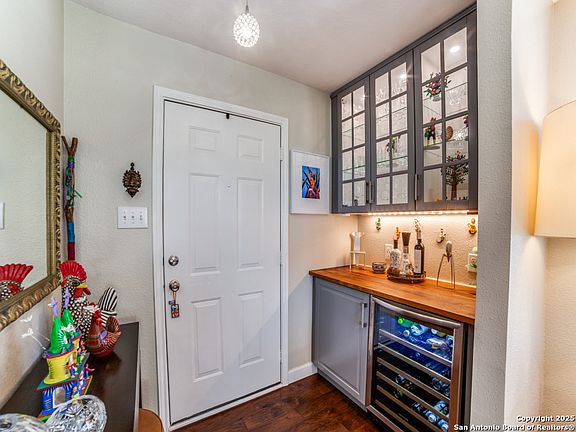 **OPEN HOUSE Sunday, OCT 5th, 2-4pm**Welcome to the Overlook at Carriage Hills in North San Antonio! This beautifully updated home offers abundant natural light, modern fixtures, and engineered hardwood floors throughout. The heart of the home is a true chef's kitchen with stainless steel appliances, featuring a striking waterfall island with a built-in microwave, ample storage, and a built-in refrigerator framed by integrated cabinetry. Sliding doors open to a flagstone patio with plenty of space to relax and entertain, creating seamless indoor-outdoor flow. A remodeled master bath with elegant Carrera marble, a custom mini bar with fridge, and handmade barn doors crafted in Mexico add warmth and style. Recent updates include a new HVAC (2025), a sturdy cedar privacy fence, and a sprinkler system for easy lawn care. The true gem of this property is the private backyard sanctuary-a peaceful retreat that makes city living feel worlds away. Ideally located in the highly acclaimed Northside ISD, you'll be within walking distance to Leon Creek trails, have easy access to the new H-E-B, and be just minutes from UTSA and the Medical Center. This home blends convenience, comfort, and style in one inviting package.