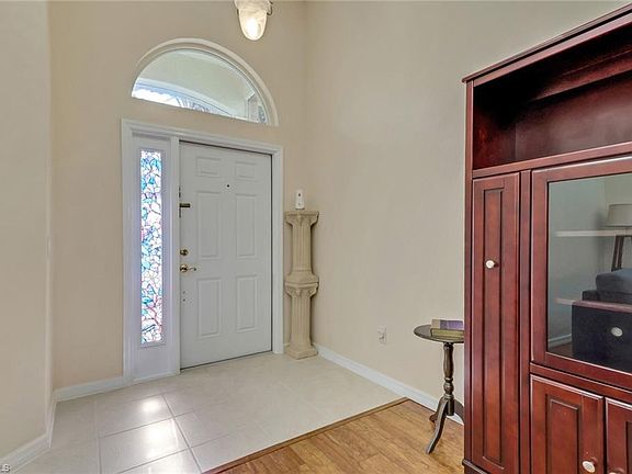 Beautiful Two-Story Home in Stoneybrook at Gateway! Welcome to this stunning 3–4 bedroom, 2.5 bath home with a spacious three-car garage, located in the highly sought-after gated and guarded community of Stoneybrook at Gateway. This meticulously maintained home features a brand-new roof, new stainless steel appliances, and upgraded hurricane-impact windows for enhanced safety, efficiency, and peace of mind. Enjoy a large screened back lanai perfect for relaxing or entertaining, complete with a 6-person Jacuzzi hot tub, outdoor furniture, and a tranquil waterfall wall. A charming front entrance lanai adds even more curb appeal. Inside, you’ll find an open eat-in kitchen with elegant hardwood cabinetry and all new appliances, a formal dining room, and an inviting front living area. The family room showcases a striking stone fireplace wall, creating a warm and stylish focal point. The primary suite, conveniently located on the main floor, features sculpted walls, two elegant chandeliers, and a spacious en suite bath. Upstairs, you’ll discover a large loft/den/office/flex space with modern built-in shelving—perfect for a home office, playroom, or entertainment area. Two additional guest bedrooms each feature walk-in closets, and the upstairs bath has been recently updated with new tile flooring. Additional highlights include a new roof, hurricane-impact windows, a brand-new A/C system with transferable warranty, and numerous modern updates throughout. This home offers comfort, safety, style, and plenty of space for modern living—a true must-see!