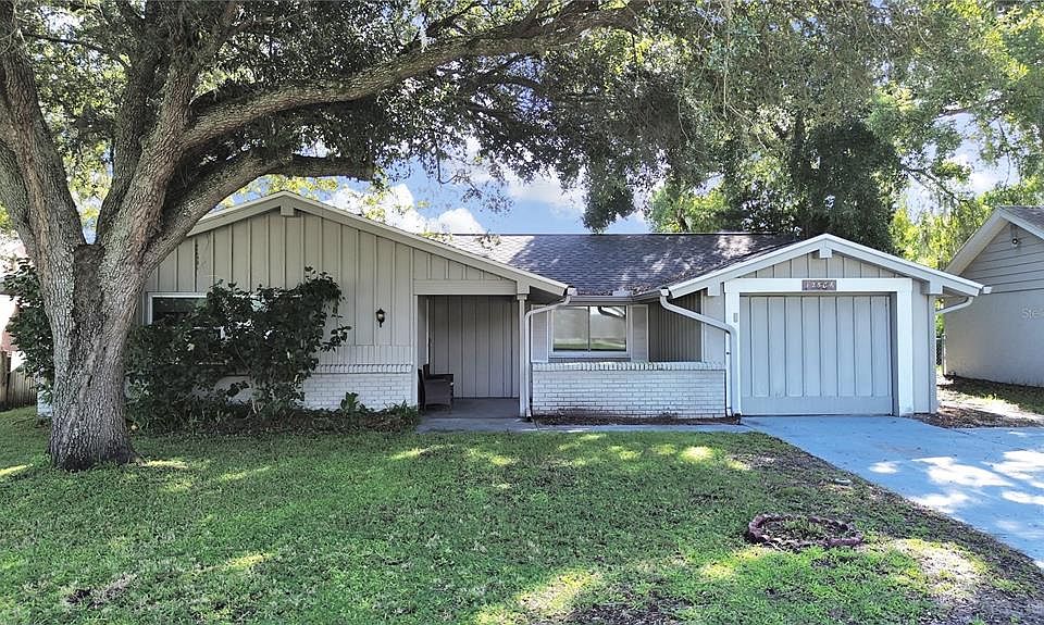 Located in Beacon Woods golf community. this 2 bedroom with bonus room, 2 baths, 1 car garage, screened pool home, fenced yard on a cul-de-sac. A/C 2017. NEW Impact windows, gutters and spouts replaced 2024, sprinkler system 2 years ago, outside lights, new roof 3 years ago. open dining, living and kitchen area. Additional bonus room leading to the back porch overlooking the pool area. custom designed open Kitchen with breakfast bar, pantry, granite countertops, tile backsplash, accent lighting, lots of counter space. Pass through window from kitchen to enclosed porch. Home Includes Refrigerator, Range, Dishwasher, Washer and Dryer. Master bedroom overlooks the pool through large ceiling to floor window and bathroom with walk in closet. tiled walk in shower, vanity, fixtures, lighting and toilet. Guest bath has Tub/shower. Glass enclosed porch leads to fenced back yard. screened pool (plumbed for heater) with brick coping and open screened patio space. Community swimming pool, tennis courts, recreational facility. banking, shopping, restaurants close by. About 45 minutes drive to Tampa International Airport.