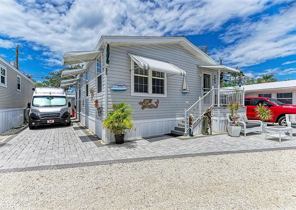 **Coastal Living in Cortez Park!** Step into the relaxed Florida lifestyle with this charming **2-bedroom Jacobsen home** located in the highly sought-after **55+ waterfront community of Cortez Park**. Just steps from the **Intracoastal Waterway** and minutes to the sugar-sand beaches of Anna Maria Island, this home offers the perfect blend of comfort, convenience, and coastal charm. Inside, you’ll find an **open and airy floor plan** with plenty of natural light, a spacious living area for entertaining, and a **well-equipped kitchen** with ample storage. Both bedrooms are comfortably sized, offering space for guests or a cozy home office. Enjoy your morning coffee or evening breeze from the brand new elevated deck , perfect for soaking in the laid-back Florida vibe. This property has been elevated and had no damage from the Hurricanes. There is a fantastic pavered driveway and front patio along with a large storage shed and deck in the back. Cortez Park is a **resident-owned, pet-friendly community** known for its **friendly neighbors, private marina, and stunning water views**. Residents love the easy access to boating, fishing, and nearby waterfront dining — all within one of the Gulf Coast’s most historic and picturesque fishing villages. Whether you’re seeking a **seasonal getaway or a full-time coastal retreat**, this turnkey home puts you right where you want to be — **on the water, close to everything, and surrounded by the best of Florida living**.