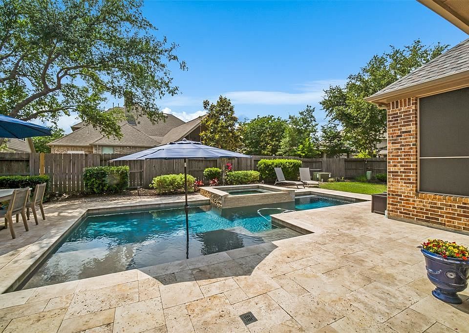 Located in the highly acclaimed community of Bridgeland 12507 Cove Springs Drive offers 4 bedrooms, 3 full baths & 2 half baths, a study, game room, media room, & an attached three-car tandem garage. The combination of luxury vinyl plank flooring, carpet, and engineered wood floors adds variety & texture to the home's interior. The kitchen serves as a focal point of the home offering features like a breakfast & coffee bar, granite countertops, ample cabinets to maximize storage space, a gas cooktop & stainless steel appliances that enhance functionality & style. Just off the kitchen is the family w/a beautiful stone fireplace. The spacious primary suite offers an ensuite w/a spa-like atmosphere w/a jetted tub, glass shower, double sinks, vanity & a walk-in closet. The backyard oasis features a covered patio, a pool w/a tanning ledge w/an umbrella stand & green space for playing &gardening. Zoned to CFISD & conventionally located to nearby dining, shopping, HWY 290, and 99.